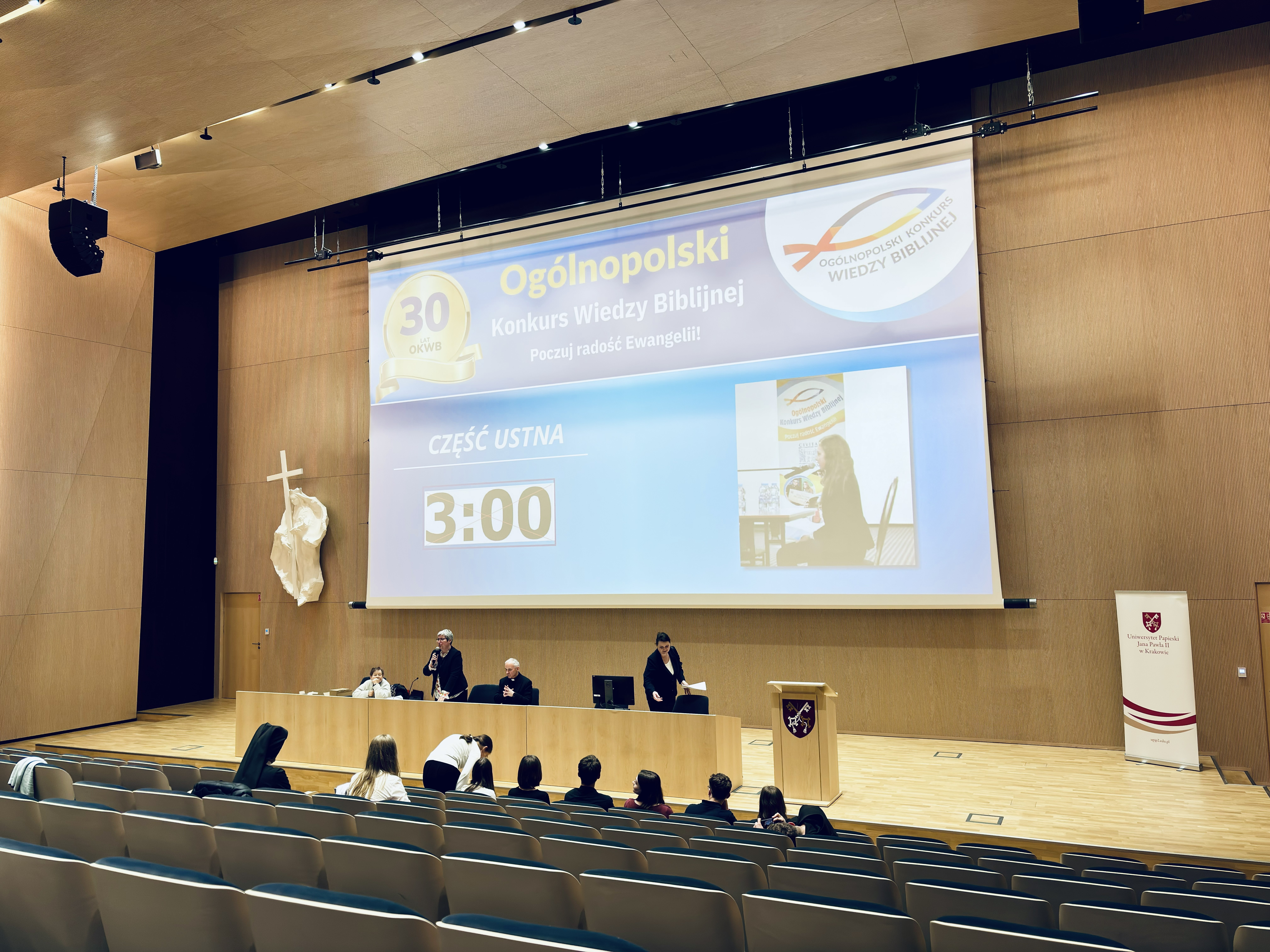 10 marca nasi uczniowie rozpoczęli swoje zmagania w szkolnym etapie 30. Ogólnopolskiego Konkursu Wiedzy Biblijnej organizowanego przez Katolickie Stowarzyszenie „Civitas Christiana”. W tym roku zakres tematyczny konkursu obejmował Księgę Estery, Księgę Mądrości oraz Ewangelię św. Mateusza wraz z wprowadzeniem, przypisami i komentarzami oraz słownikiem pojęć. Dzięki dobremu przygotowaniu do etapu diecezjalnego, który odbył się 15 kwietnia w Kampusie UPJPII w Krakowie przy ul. Bobrzyńskiego 10 awansowali: Adam Kowalczyk z kl. 2TAO, Weronika Jędrocha z kl. 4BTB oraz Monika Kęska z 4TAK. Drugi etap konkursowych zmagań składał się z części pisemnej oraz ustnej – przewidzianej dla najlepszej siódemki. Po pierwszej części nasza uczennica Monika Kęska z trzecim wynikiem dostała się do etapu ustnego, w którym po zaciętych słownych zmaganiach w dogrywce zajęła miejsce IV.